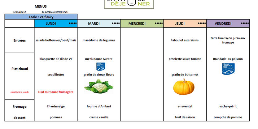 Les repas de la cantine scolaire sont élaborés par la société "La Pause Déjeuner" et livrés en liaison chaude.